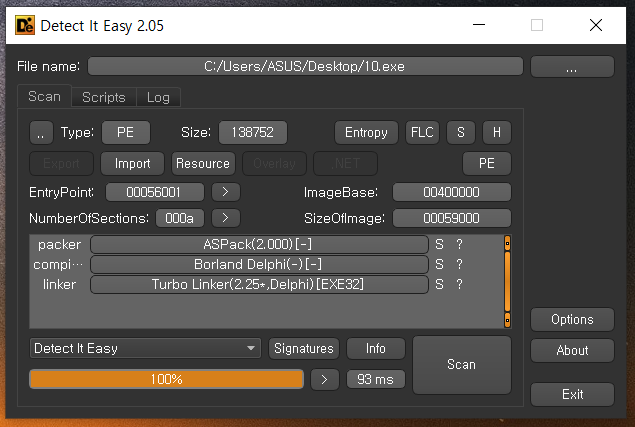 해당 프로그램은 ASPACK(2.0)로 패킹이 되어있습니다.