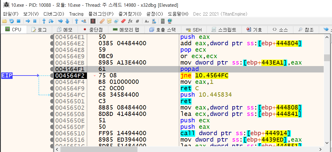 OEP로 이동하는 주소를 찾았습니다. 계속 트레이스 해줍시다.