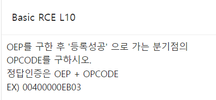 OEP주소를 구하고 등록성공으로 가는 옵코드를 구하는 문제입니다.