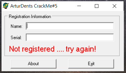 프로그램을 실행해보니 Name 과 Serial 입력이 불가능하고 Not registerd 라는 캡션이 출력됩니다.