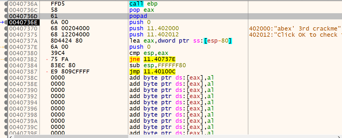 그럼 결과적으로 OEP는 00401000가 되고