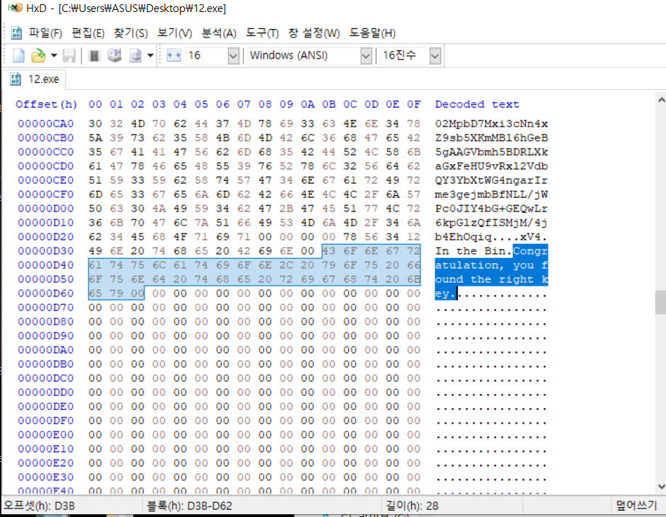key 값을 찾았으니 성공 문자열을 수정하기 위해 HXD로 열어줍시다.