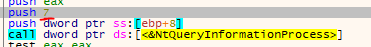 내부에서 NtQueryInformationProcess 함수를 사용한다.