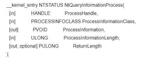 typedef NTSTATUS(WINAPI* PNtQUERYINFORMATIONPROCESS) (