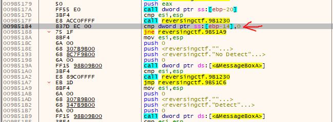MessageBoxA(NULL, "No Detect", "", MB_OK);