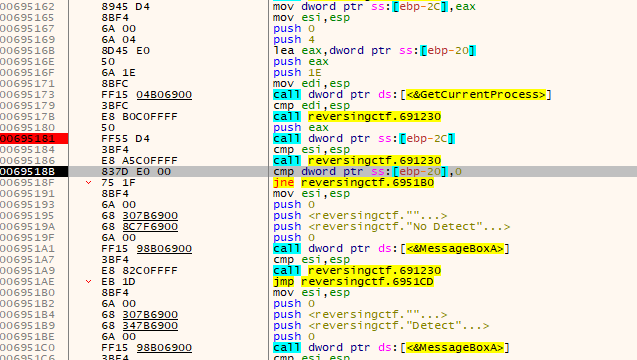 MessageBoxA(NULL, "Detect", "", MB_OK);