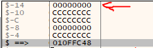 현재 디버깅 환경 중이므로 [ebp-14] 영역에 DebugFlags가 0으로 셋팅된 모습