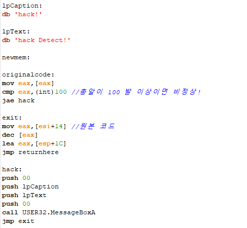 총알 갯수를 변조하는 핵을 막기 위한 간단한 Anti-Code도 작성해 보 자