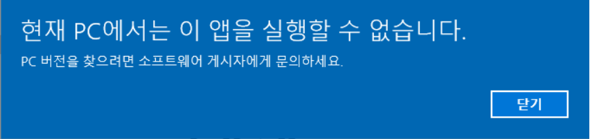 해당 환경에서 실행할수 없다는 문구가 뜬다.