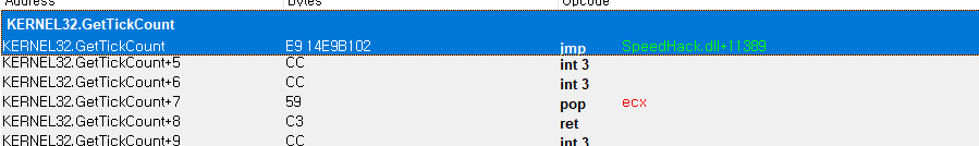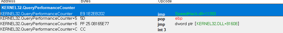 GetTickCount() , QueryPerformanceCounter() 함수에 내 Hooking 코드가 설치된 것을 확인할 수 있다.