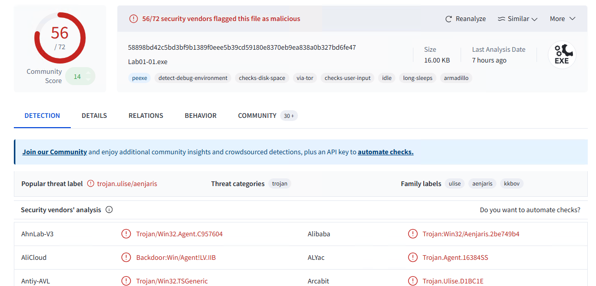 1) VirusTotal Detections?