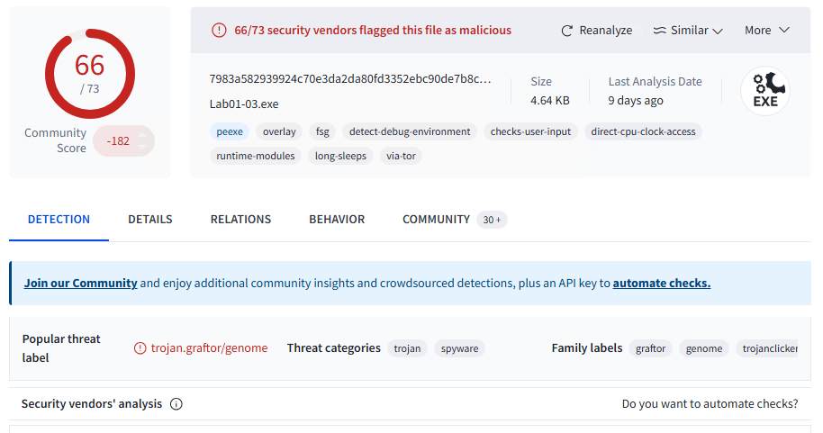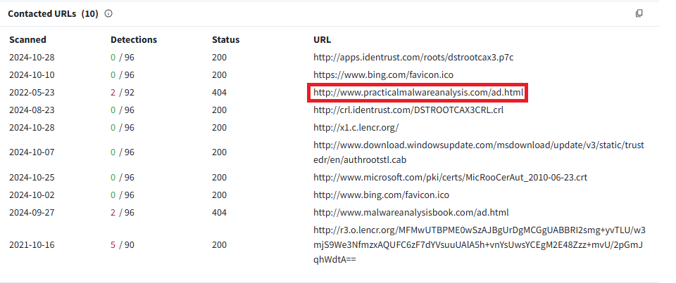 Virustotal에서도 확인해봤을 때 Lab01-03.exe는 해당 URL에 접근한다는 것을 알 수 있다.