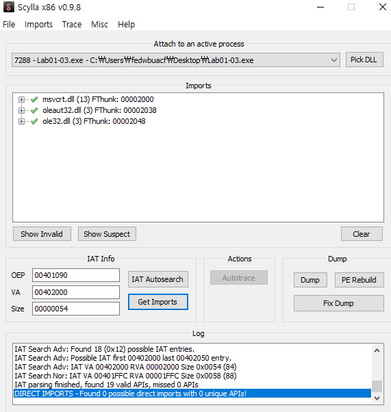 OEP 주소에 도달했으면 Scylla 플러그인을 사용해서 Dump를 진행한다.