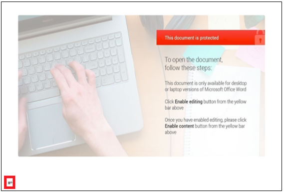 사용자가 Word 문서를 열면 “매크로를 사용할 수 없도록 설정했습니다”라는 보안 경고와 함께, 편집 및 콘텐츠 활성화를 유도하는 이미지가 문서에 표시된다. 이는 해당 문서에 매크로 코드가 포함되어 있음을 암시하며 사용자가 콘텐츠 활성화 버튼을 클릭할 경우 악성 매크로가 실행될 가능성이 존재한다.