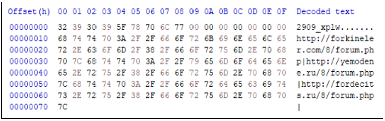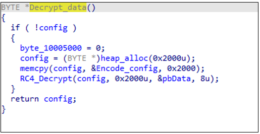 최종 피해자 정보 문자열을 구축하기 전에, 내부에 저장된 구성을 RC4 알고리즘으로 암호 해독한다.