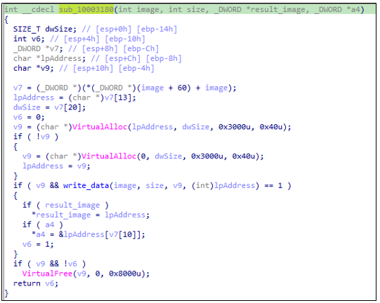 압축 해제를 통해 메모리 상에서 PE 구조가 확보되고 이후 프로세스 주입 및 실행 단계로 이어진다.