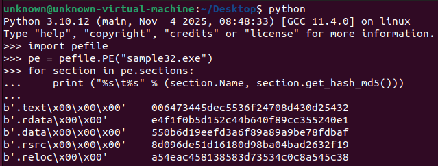 파이썬으로 pefile 모듈을 이용한 sectionhash 추출