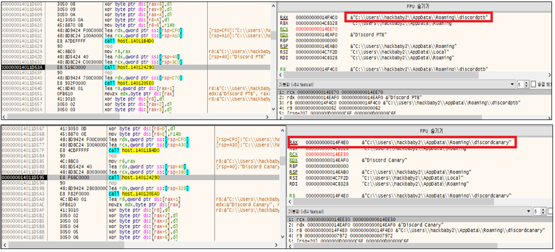 browser 루틴은 C:\Users\ **** \AppData\Local\Temp\runtime 경로 하위에 browser 디렉터리를 생성한 뒤, 시스템에 설치된 다양한 브라우저를 순회하며 사용자 데이터 영역(Profiles, User Data\Default, Local Storage\leveldb)을 탐색한다. 이를 통해 브라우저 인증 토큰을 수집하며, Discord 웹 인증에 활용되는 Discord, Discord PTB, Discord Canary 환경에서도 토큰을 탈취하는 행위가 확인된다.