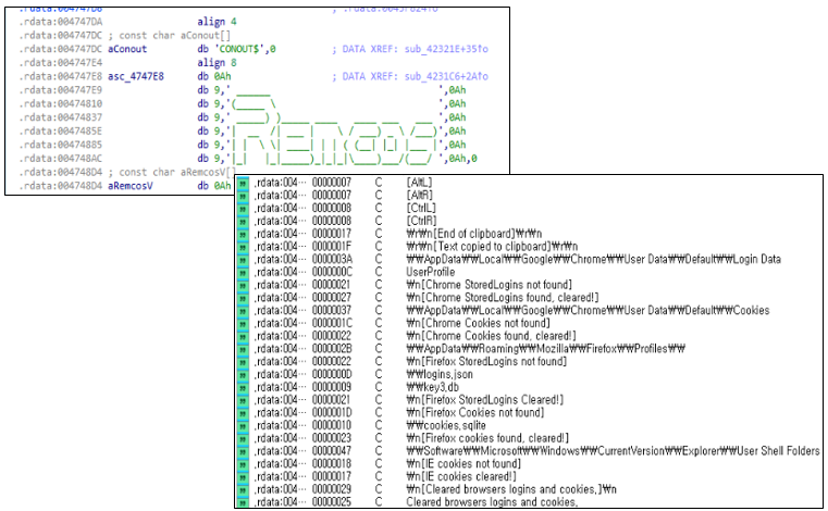 반면, 키로깅, 스크린샷, 오디오 녹음 등의 기능은 기본적으로 비활성화되어 있으며, 필요 시 공격자가 원격에서 활성화할 수 있는 구조로 보인다. Mutex 값(Rmc-NVJF9O)을 통해 중복 실행을 방지하는 로직도 포함되어 있다.