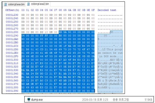 수동으로 페이로드를 추출하는 방법 외에도, Donut 로더로 생성된 쉘코드는 donut-decryptor 도구를 사용하면 쉘코드에 포함된 암호화된 페이로드를 복호화하여 원본 PE 파일 형태로 손쉽게 복원할 수 있다.