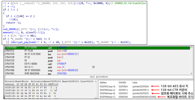 페이로드 복호화 이후, API Resolve 단계에서 획득한 LoadLibraryA 함수를 활용하여 Agent 페이로드 실행에 필요한 라이브러리를 동적으로 로드한다. 또한, 앞서 수행한 PE 파싱 기법을 통해 각 모듈의 Export Table을 순회하며 필요한 API 주소를 직접 추출한다.