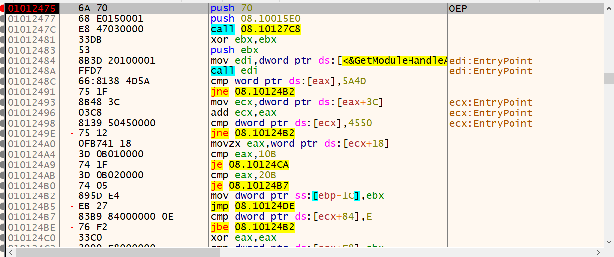 점프 해보니 OEP 주소를 찾은것 같습니다.