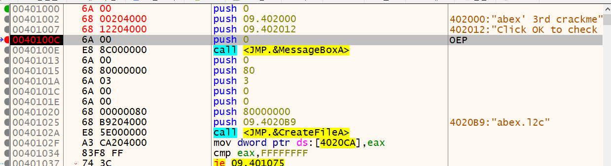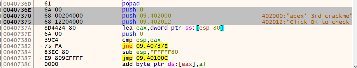 그럼 해당 OEP 주소로 이동하기전에 문자열을 PUSH 하는 코드가 StolenByte 가 된다는 소리가 되겠네요.