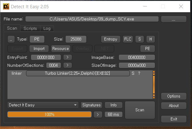 pe툴로 열어본 결과 UPX(2.03)으로 패킹 된 프로그램이란 걸 확인했습니다.