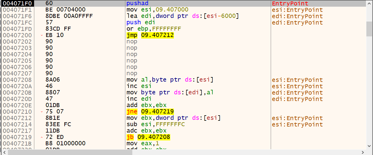 해당 프로그램의 EP 주소로 이동했습니다.