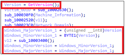GetVersion()를 호출하여 윈도우 OS 버전 + 빌드 정보를 가져온다. Major/Minor 버전 추출을 위해 하위/상위 바이트를 나눈다.