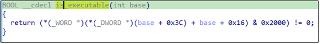 is_executable() 루틴에서는 파일의 PE 헤더를 파싱하여 Characteristics 플래그를 확인하고 IMAGE_FILE_EXECUTABLE_IMAGE 플래그가 설정되어 있는지 여부로 EXE/DLL 구분한다.
