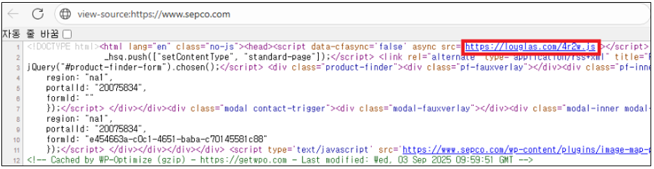 | 침해된 사이트 | hxxps://www[.]sepco.com/ |