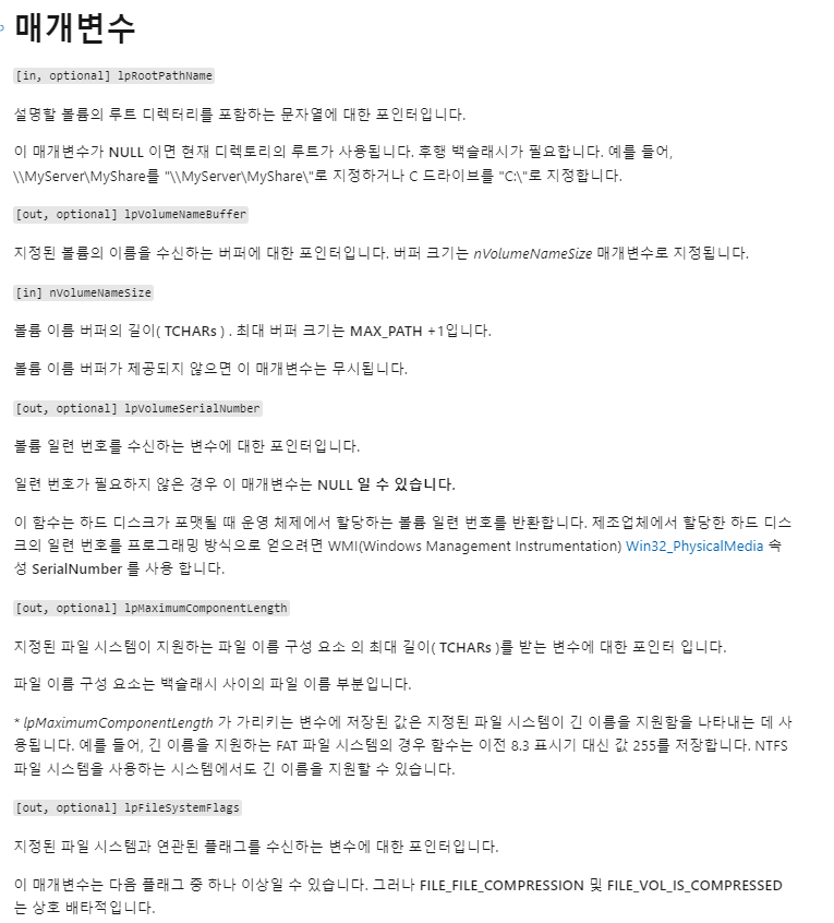 그럼 2번째로 들어가는 매개변수인 VolumeNameBuffer인 주소