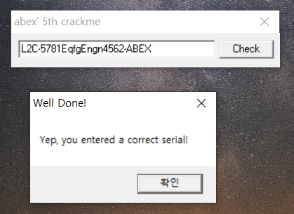 C드라이브가 CodeEngn일 경우 시리얼은 L2C-5781EqfgEngn4562-ABEX 가 되네요.